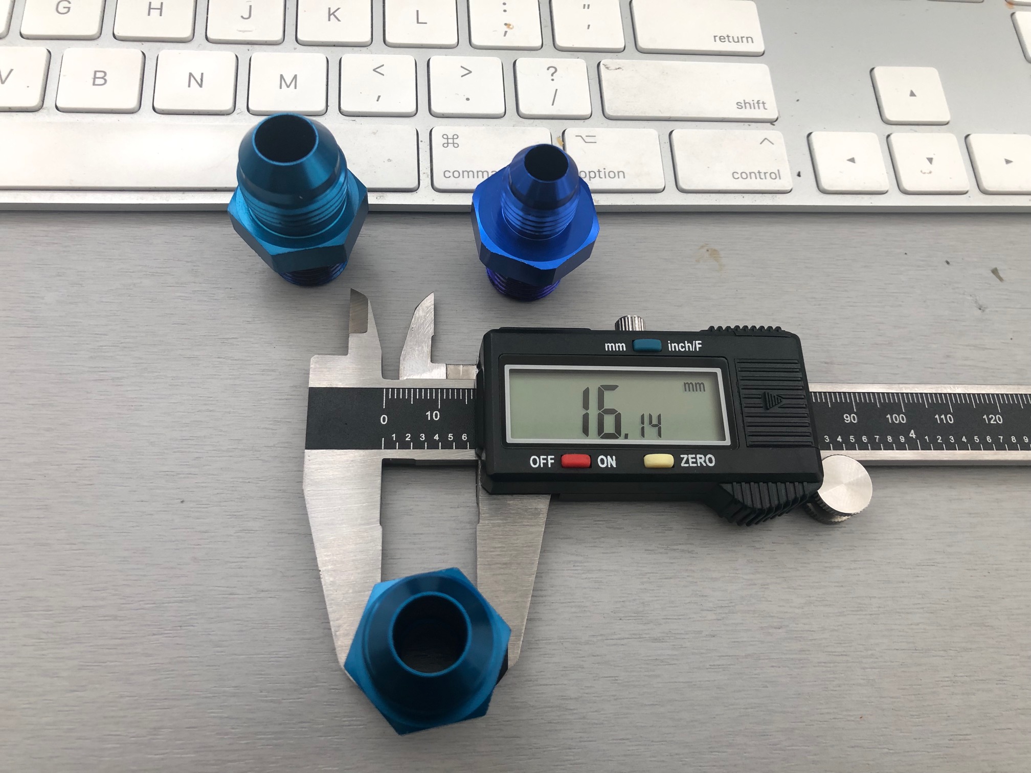 The AN fittings on the ADD W1 site are about 15.6MM which is just enough for them not to fit snugly and while you could use teflon tape to try to take up the slack, they simply would not torque down to provide an airtight seal, which defeats the purpose of this project if that critical part — eliminating possible vacuum leaks — couldn't be done.